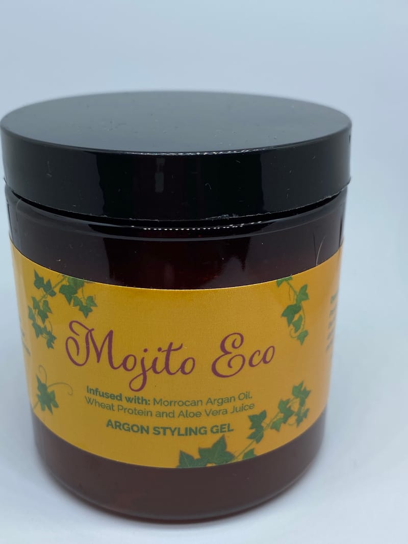 ARGON STYLING GEL infused with: Morrocan Argan Oil, Wheat Protein and Aloe Vera Juice